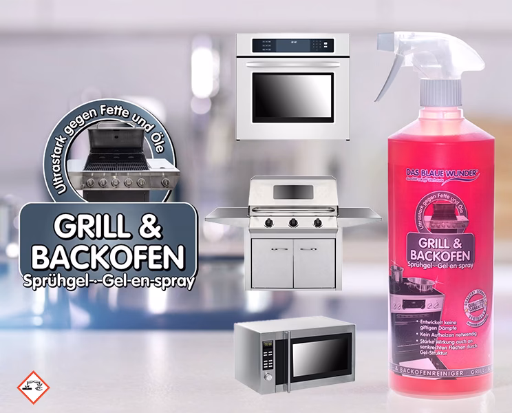 Die Reinigung von Grill und Backofen muss keine mühsame Angelegenheit mehr sein. Mit dem Das blaue Wunder® Intensiv Sprühgel steht Ihnen ein leistungsstarker, vielseitiger und anwenderfreundlicher Helfer zur Seite, der selbst hartnäckigste Verschmutzungen streifenfrei und ohne großen Kraftaufwand beseitigt. Die kaltaktive, geruchsneutrale und schonende Formel macht die Reinigung nicht nur effektiver, sondern auch angenehmer und sicherer. Investieren Sie in saubere Geräte und mehr Zeit für die schönen Dinge im Leben – das Das blaue Wunder® macht es möglich. Probieren Sie es aus und erleben Sie, wie einfach strahlende Sauberkeit sein kann!