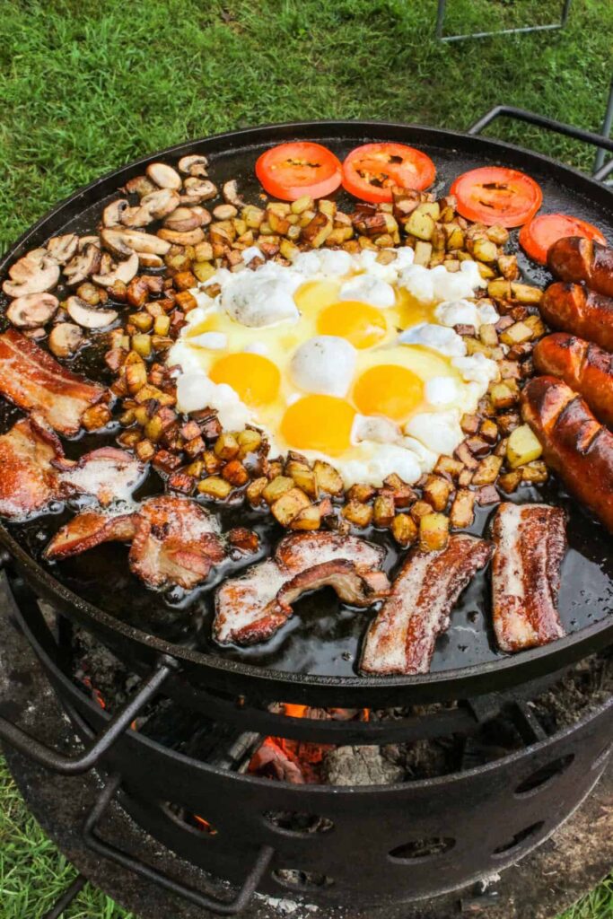 • Gusseisenpfanne (Skillet): Dies ist das absolute A und O für das Grillfrühstück. Eine robuste Gusseisenpfanne verteilt die Hitze gleichmäßig und speichert sie hervorragend. Sie ist perfekt für Rührei, Corned Beef Hash, French Toast, Shakshuka oder sogar Pfannkuchen. Stellen Sie sicher, dass sie für hohe Temperaturen geeignet ist.