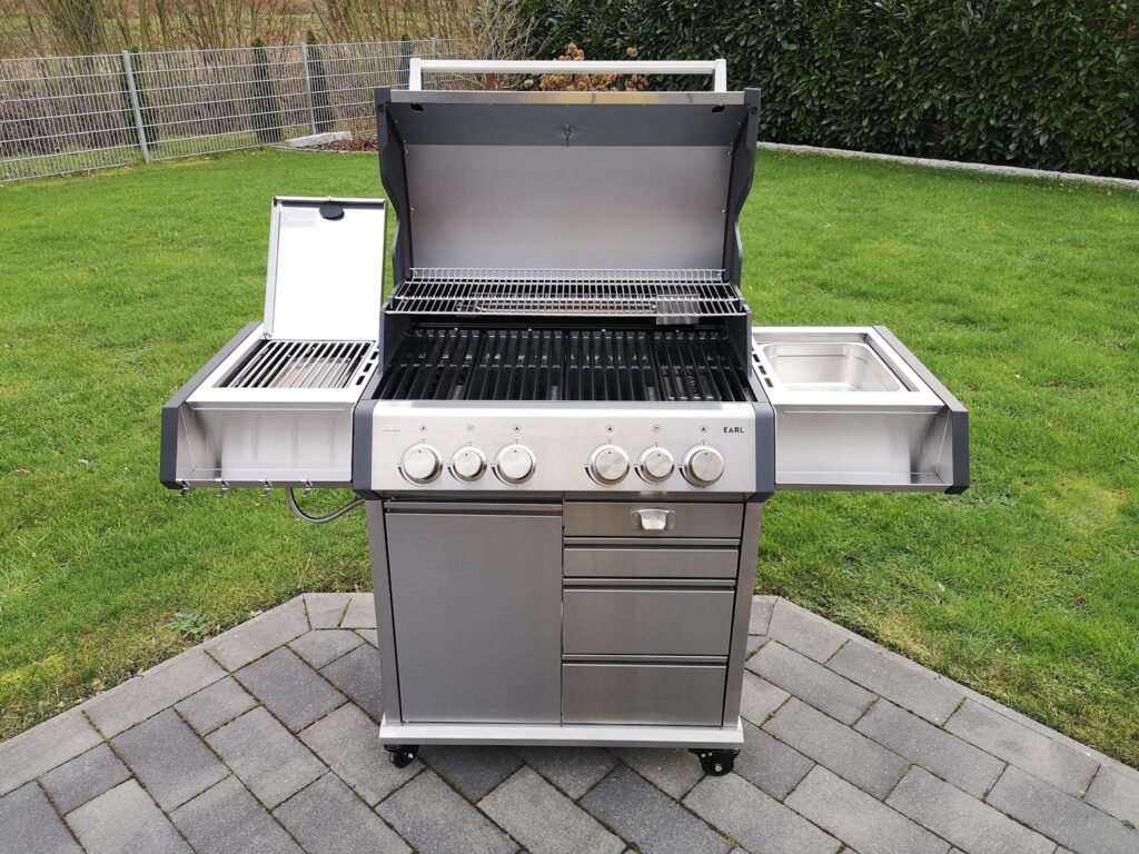 - Vier weitere Edelstahlbrenner (je 3,5 kW) für indirektes Grillen und verschiedene Temperaturzonen.