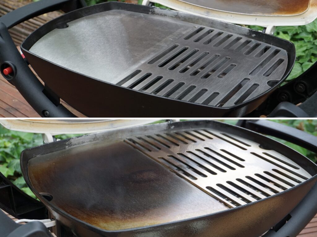 • Regelmäßige Grobreinigung: Nach jeder Nutzung sollten Sie den Rost zumindest grob reinigen und leicht einölen. Regelmäßige Pflege verhindert, dass sich Schmutz festsetzt und hält den Rost jahrelang in Top-Zustand.