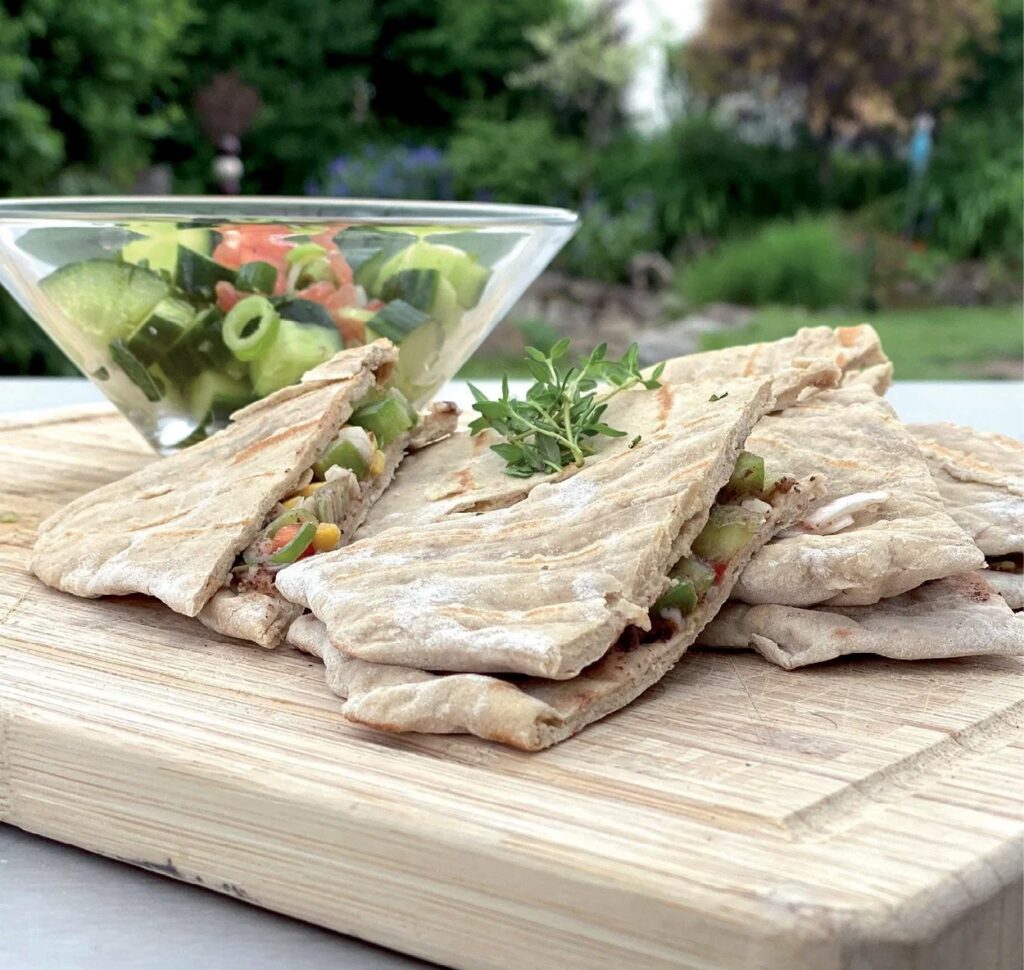 A: Ein gewisser Grad an Klebrigkeit ist beim Roggenteig normal. Wenn er jedoch zu schwer zu handhaben ist, können Sie löffelweise etwas mehr Weizenmehl einarbeiten, bis er besser zu kneten ist. Achten Sie darauf, die Arbeitsfläche gut zu bemehlen, wenn Sie die Fladen ausrollen, und die Hände leicht einzuölen.