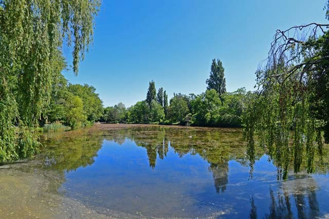 Gerade wenn man von Outdoor-Kulinarik und dem Genuss im Freien spricht, darf ein Ort wie der Wasserpark in Floridsdorf nicht unerwähnt bleiben. Dieser beeindruckende Park, der sich über rund 144.000 Quadratmeter erstreckt und zu einem Drittel aus Wasser besteht, wurde bereits 1929 fertiggestellt. Er war eines der größten Projekte der Wiener Stadtgärten unter der damaligen Leitung von Direktor Fritz Kratochwjle und zeugt von einer visionären Parkgestaltung. Große Wasserflächen, kleine, spitze Brücken im japanischen Stil und zwei durch Kanäle verbundene Teiche prägen das Bild. Eine große Insel in der Mitte und mit Gneis-Steinen gefasste, romantisch beleuchtete Wege laden zum Spazieren und Verweilen ein.