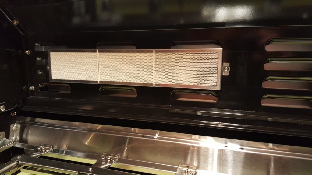 Der Backburner, auch Heckbrenner oder Rückwandbrenner genannt, ist ein spezieller Brenner, der sich typischerweise an der Rückseite des Garraums eines Gasgrills befindet und nach vorne, also zum Grillgut hin, strahlt. Im Gegensatz zu den Hauptbrennern, die die Hitze von unten erzeugen, arbeitet der Backburner meist mit Infrarotstrahlung. Eine Keramikplatte mit unzähligen kleinen Löchern wird durch die Gasverbrennung zum Glühen gebracht und gibt gebündelte, intensive Strahlungswärme ab. Dies ermöglicht Temperaturen von bis zu 800°C.