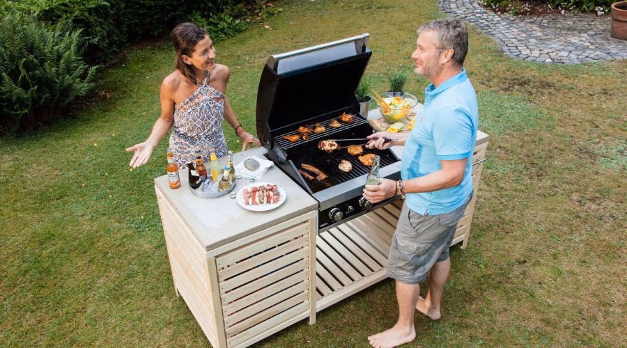 - Arbeitsplatte anbringen: Montieren Sie die Arbeitsplatte. Achten Sie darauf, dass sie eben ist und sicher befestigt wird. Eine Überlappung an der Vorderseite (Thekenüberstand) bietet bequemen Platz für Barhocker und dient als Spritzschutz.