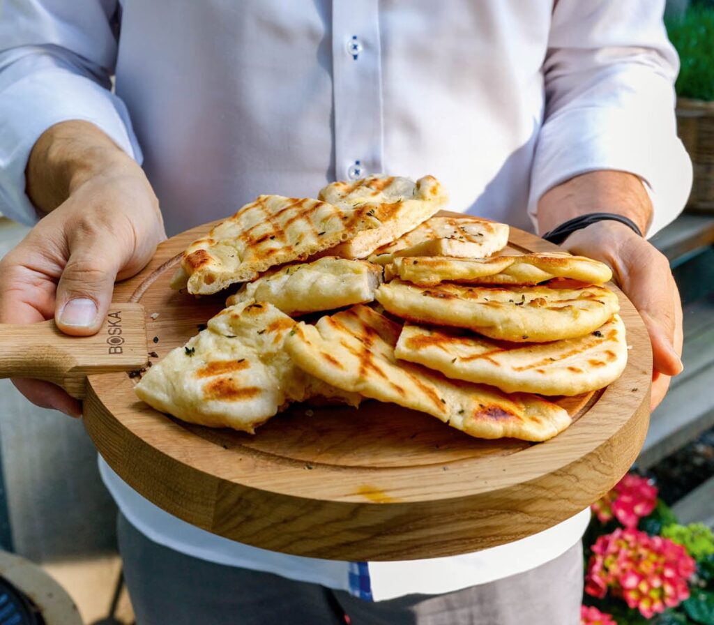 - Gegrilltem Fleisch oder Fisch: Ob saftige Steaks, würzige Würstchen oder zarter Fisch – das Fladenbrot nimmt Saucen und Grillsäfte wunderbar auf.