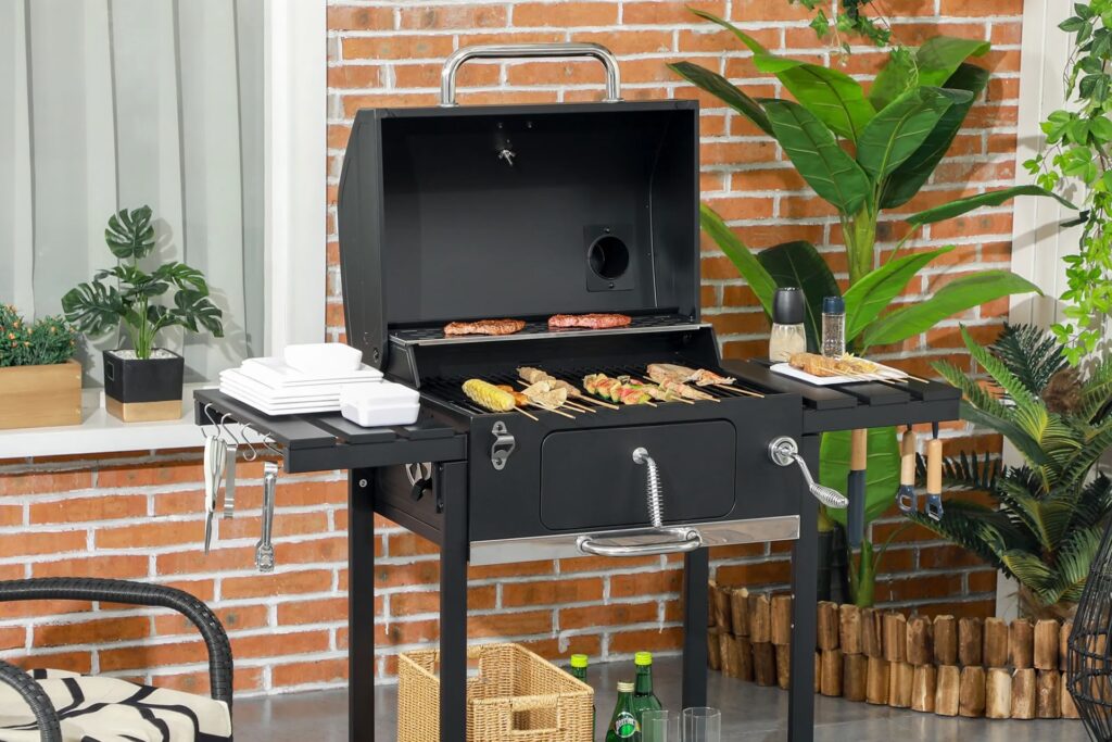 Ein sicherer Grillplatz ist das A und O. Sorge für ausreichenden Abstand zu Gebäuden, Zäunen und Pflanzen. Halte immer einen Feuerlöscher, einen Eimer Sand oder einen Wasserschlauch griffbereit. Bei Holzkohlegrills ist eine gute Belüftung wichtig, um Rauchstau zu vermeiden. Achte auf einen stabilen Stand des Grills und vermeide Stolperfallen im Bereich des Grillplatzes. Kinder und Haustiere sollten stets beaufsichtigt werden.