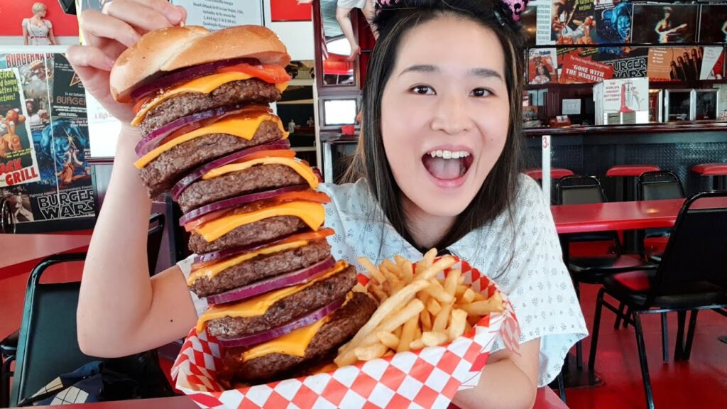 Der größte Burger ist der „Octuple Bypass Burger“, der 8,5 Patties und schätzungsweise 20.000 Kalorien enthält.