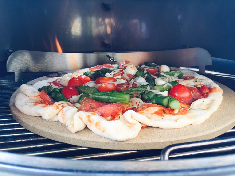 Besonders lecker schmeckt der italienische Pizzateig, wenn er direkt auf den Grill kommt. Die hohe, gleichmäßige Hitze eines Grills, insbesondere in Kombination mit einem Pizzastein, simuliert die Bedingungen eines traditionellen Steinofens. Das Ergebnis ist eine Pizza mit einem unglaublich knusprigen Boden und einem perfekt gegarten Belag. Natürlich lässt sich dieses Rezept auch für eine Pizza auf dem Backblech im herkömmlichen Ofen verwenden, aber der Teig kommt so richtig gut zur Geltung, wenn er auf einem Pizzastein am Griller landet.