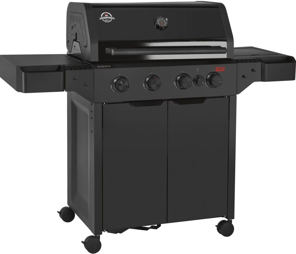 - Jamestown Grill Knox (Gasgrill): Der Knox ist ein leistungsstarker Gasgrill für ambitionierte Griller. Sein robustes Edelstahl-Gehäuse verleiht ihm ein elegantes Aussehen und sorgt für Langlebigkeit. Ausgestattet mit drei leistungsstarken Edelstahlbrennern und einem zusätzlichen Infrarotbrenner, heizt er schnell auf und ermöglicht präzises Grillen. Die große emaillierte Gussrost-Grillfläche von 60 x 45 cm bietet viel Platz. Zahlreiche Extras wie eine Seitenkochstelle, eine Warmhaltezone, ein beleuchtetes Bedienfeld und ein effektives Fettauffangsystem runden das Paket ab.