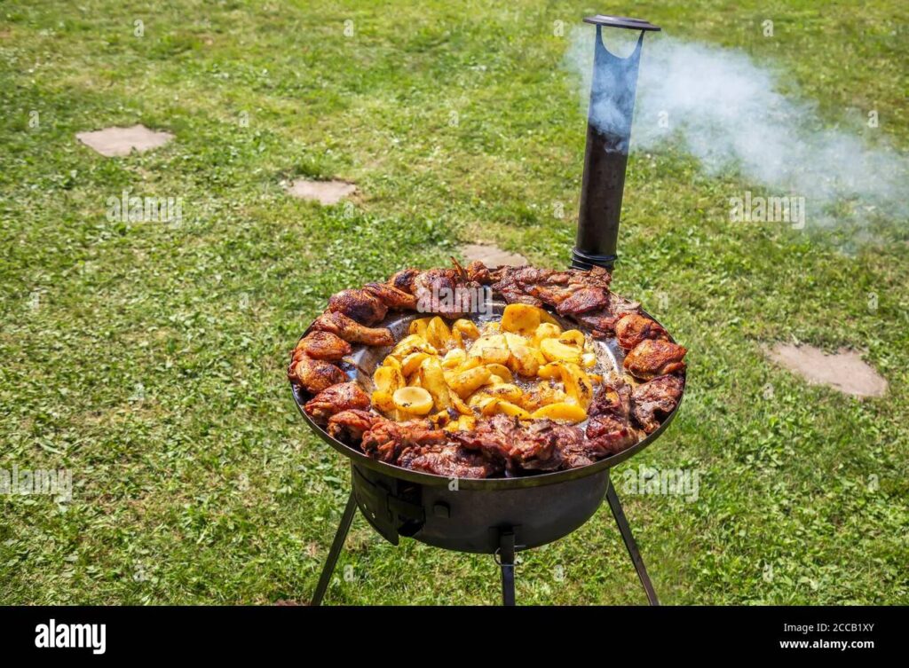 Die Peka ist mehr als nur ein Kochgerät; sie ist eine Philosophie des langsamen, schonenden Garens, die zu unvergleichlichen Ergebnissen führt. Die klassische Peka besteht aus einer Eisenkuppel, die an einen umgedrehten Wok erinnert, und einem darunter liegenden, etwas kleineren Blechtablett mit hohem Rand. Lose Eisenringe verhindern, dass die Glutstücke von der Kuppel rutschen. Die Zubereitung ist erstaunlich einfach: Die Zutaten werden in das Tablett gelegt, mit der Kuppel zugedeckt und diese dann mit glühender Holzkohle belegt. Optimal funktioniert das mit der Glut eines daneben brennenden Lagerfeuers, aber auch am Erdboden lässt sich eine Peka wunderbar zubereiten.