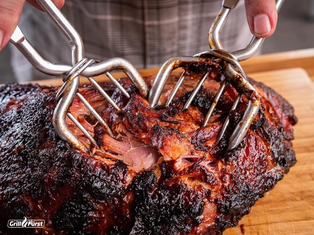 Pulled Pork ist fertig, wenn es eine Kerntemperatur von 90-94 °C erreicht hat und sich beim Einstechen des Thermometers oder mit einer Gabel butterzart anfühlt. Es sollte kaum noch Widerstand spürbar sein, und das Fleisch sollte sich leicht zerfasern lassen. Die genaue Garzeit kann variieren, daher ist es wichtiger, sich an der Kerntemperatur und der Zartheit zu orientieren als an einer festen Stundenzahl.