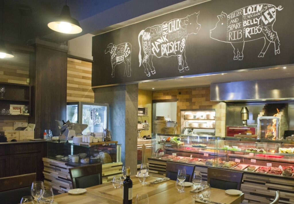 A: Ja, es gibt definitiv eine Speisekarte. Die Theke mit der Auswahl an Fleisch und Fisch dient zwar der direkten Begutachtung und Wahl der Hauptkomponente, aber die Preise, Beilagen und Getränke sind auf einer umfassenden Speise- und Weinkarte aufgeführt.