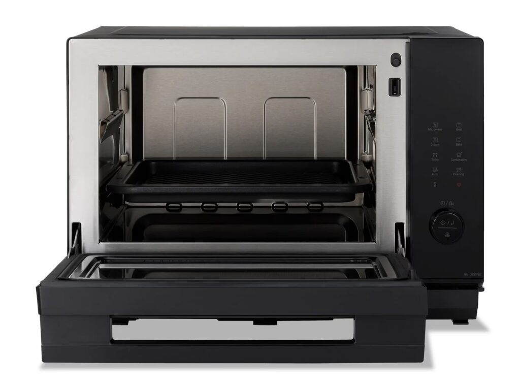 | Panasonic NN-CS89LBBPQ Kombi-Mikrowelle | Großzügig (Flachbett) | Integrierte Grillfunktion, kombiniert mit Dampf und Heißluft | Dampffunktion (Wassertank, Tropfschale), Heißluft, Selbstreinigung (4 Dampf-Modi), Feuchtigkeits-Sensor (z.B. für Ofenkartoffeln), Rezepte im Handbuch |