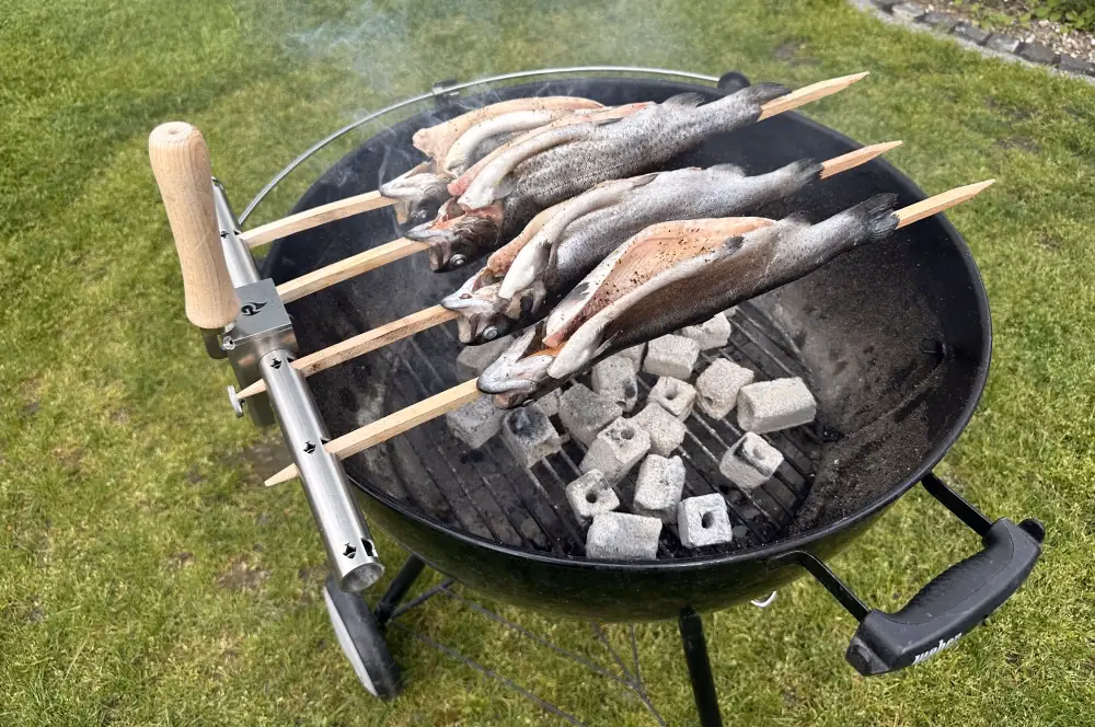 Steckerlfisch bezeichnet Fisch, der traditionell am Stock über offenem Feuer gegrillt wird. Entgegen mancher Annahme hat er nichts mit dem getrockneten Stockfisch gemeinsam, sondern ist eine frische, saftige Delikatesse. Beliebt sind vor allem Süßwasserfische wie Forelle und Saibling, aber auch Meeresfische wie Makrele werden gerne verwendet. Der Reiz liegt in der langsamen, gleichmäßigen Garung über direkter Hitze, die dem Fisch sein einzigartiges Aroma und seine Textur verleiht. Die Herausforderung für den Heimgriller besteht oft darin, die Fische stabil über der Glut zu halten und gleichzeitig die Hitze präzise zu steuern. Hier kommt spezialisiertes Grillzubehör ins Spiel, das diese traditionelle Methode für den modernen Kugelgrill zugänglich macht.